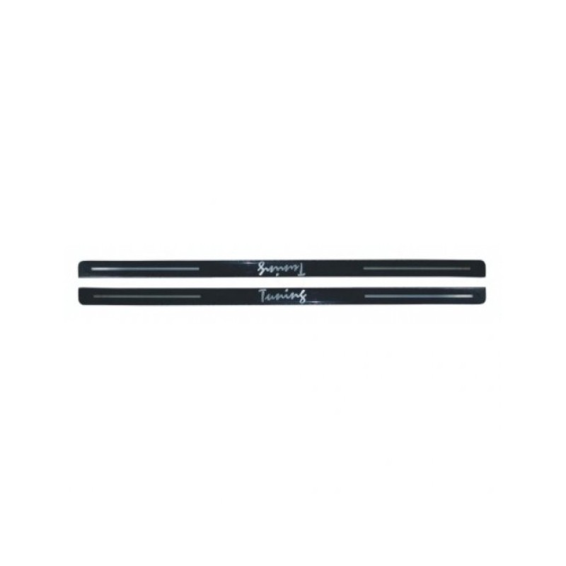 Ochrana prahů před poškrábáním. Komplet - 2 kusy. Nápis TUNING Vysoká odolnost vůči vnějším vlivům. Vylepšení designu Vašeho vozu. Připevnění pomocí oboustranné lepící pásky.Materiál: aluminium, plast .Rozměry: 2 x 53 cm.