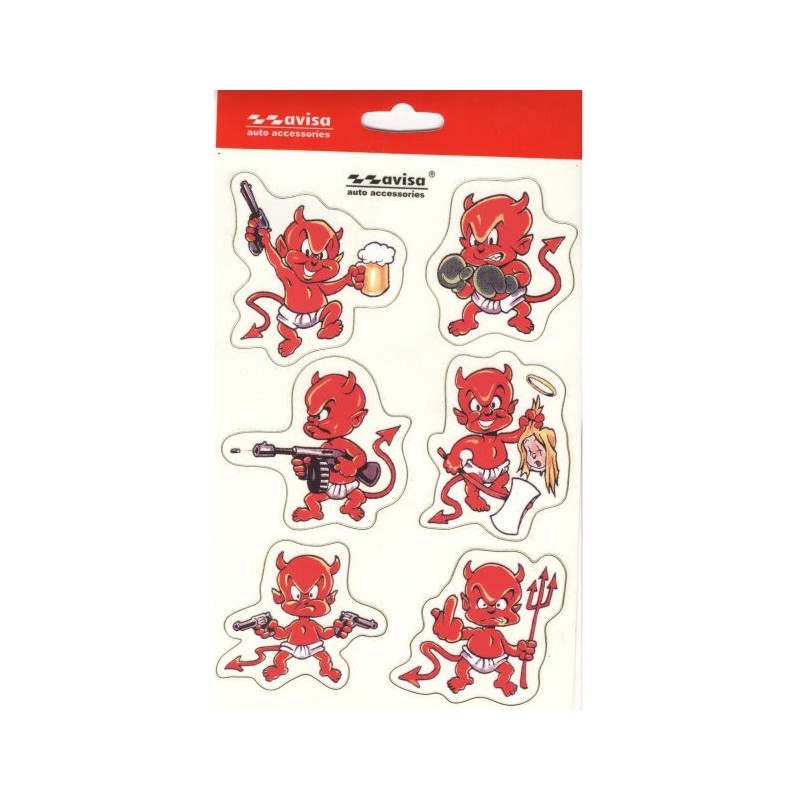 Samolepiaci dekor, Set čertíkov, sada obsahuje 6ks samolepiek. Odolné voči poveternostným podmienkam. Rozmery: 13,5 x 23 cm.
