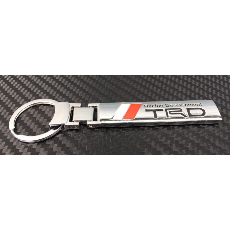 Kovový obojstranný prívesok TRD. Celkové rozmery: 11,5 x 1,5 cm.