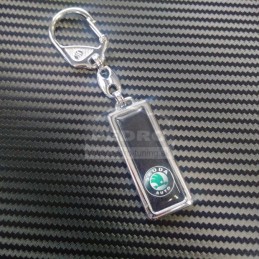 Kovový prívesok osadený 3D nálepkou.
