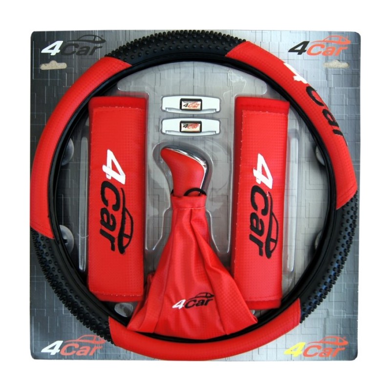 Balenie obsahuje: poťah volantu, rukoväť radiacej páky, rukáv radiacej páky, poťahy bezpečnostných pásov a zarážky na pásy