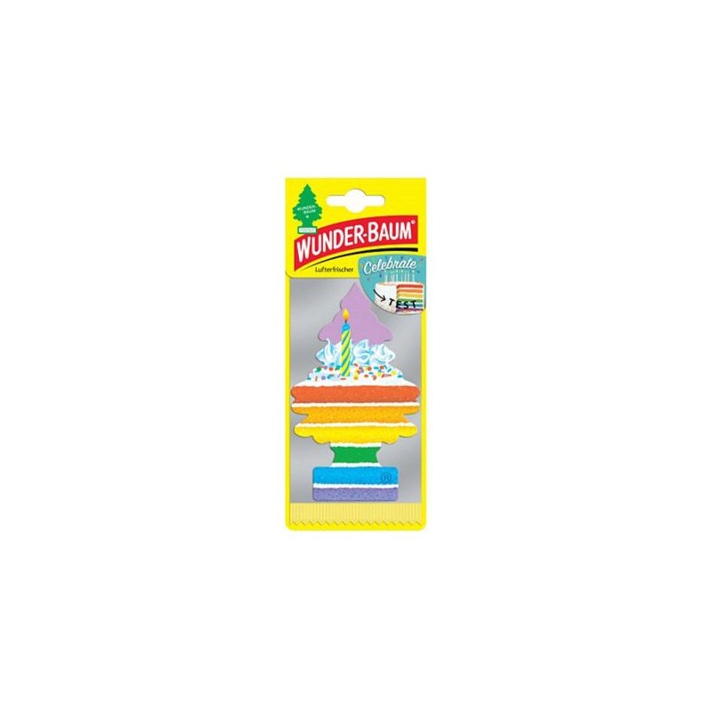 Osviežujúca a dlhotrvajúca vôňa v starom známom tvare stromčeka, ktorý všetci poznáme. Skvelá a dlhodobo overená kvalita voňaviek WUNDER-BAUM do auta či obytného priestoru. Vôňa: Celebrate. Hmotnosť: 5g.