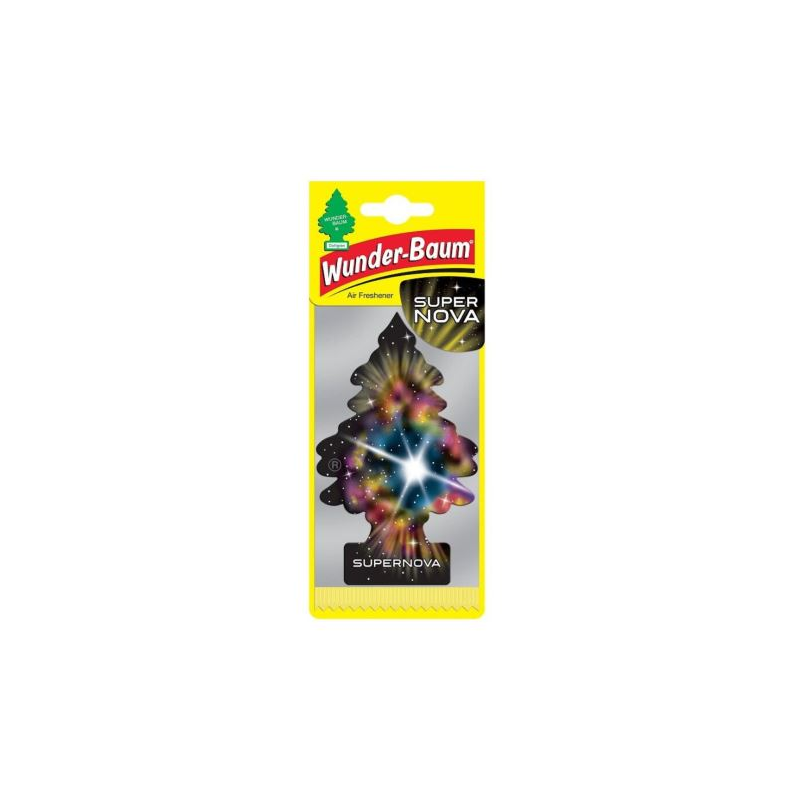 Osviežujúca a dlhotrvajúca vôňa v starom známom tvare stromčeka, ktorý všetci poznáme. Skvelá a dlhodobo overená kvalita voňaviek WUNDER-BAUM do auta či obytného priestoru. Vôňa: Super Nova Hmotnosť: 5g.