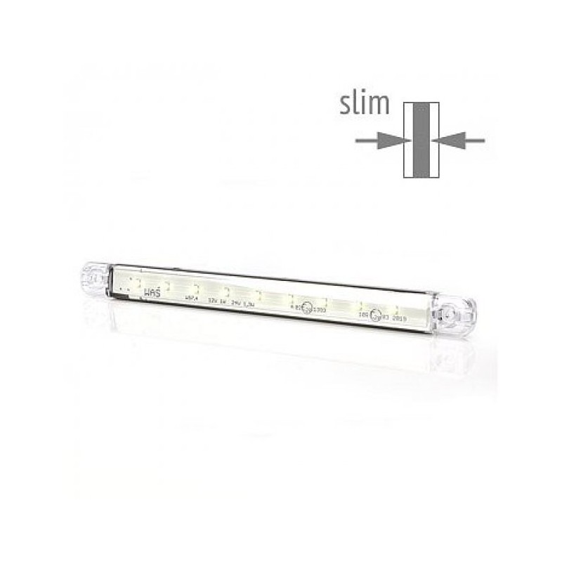 Pre novú sériu parkovacích a obrysových svetiel W97.1 – W97.5 slim je typický jedinečný vzhľad a do tejto chvíle nevídané rozmery. Výška týchto super tenkých svetiel, v technologickom prevedení SMD LED je sotva 10,4 mm!!! Majú európsku homologizáciu E20 a homologizáciu elektromagnetické kompatibility. Znamená to, že neemitujú rušivé signály vo vedení a sú proti rušeniu odolné. Trieda tesnosti IP66/IP68 nieje pre naše svetlá žiadnou novinkou – rovnako tomu je i v prípade série slim. Sú projektované tak, aby mohli bez obsluhy fungovať dlhé roky v tých najmenej priaznivých podmienkach. Odber energie je pre verziu 3LED iba 0,2W. Svetlá sú chránené proti nesprávnemu pripojeniu k napätiu a pracovné napätie je 12V - 24V.
