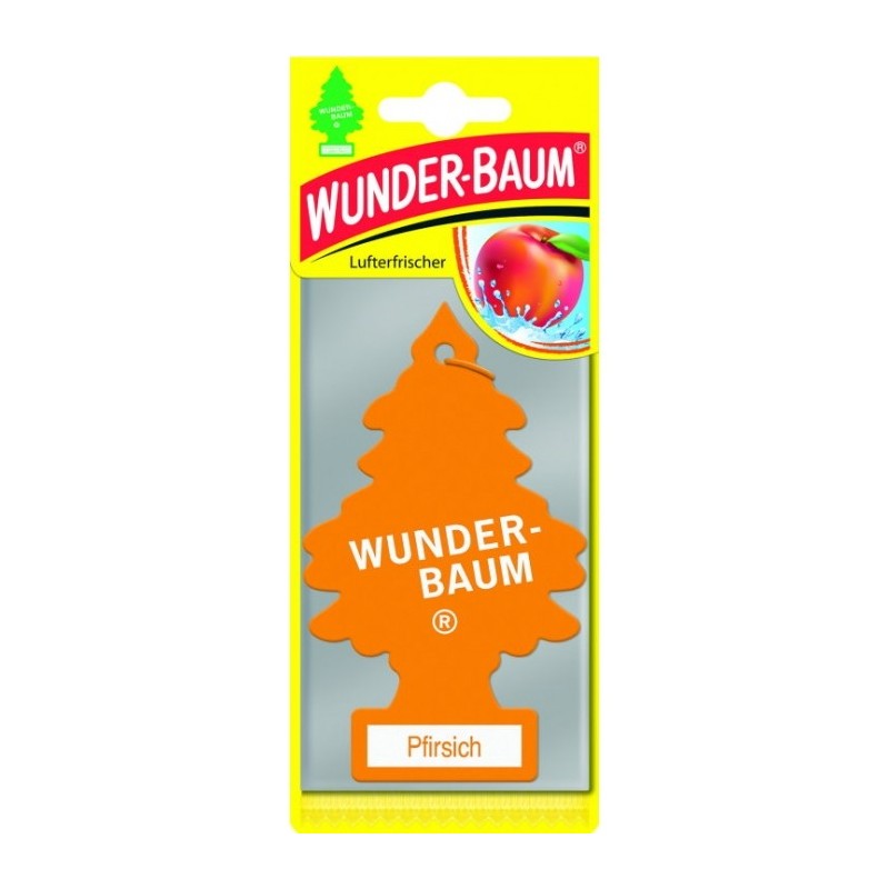 Osviežujúca a dlhotrvajúca vôňa v starom známom tvare stromčeka, ktorý všetci poznáme. Skvelá a dlhodobo overená kvalita voňaviek WUNDER-BAUM do auta či obytného priestoru. Vôňa: Peach - Broskyňa. Hmotnosť: 5g.