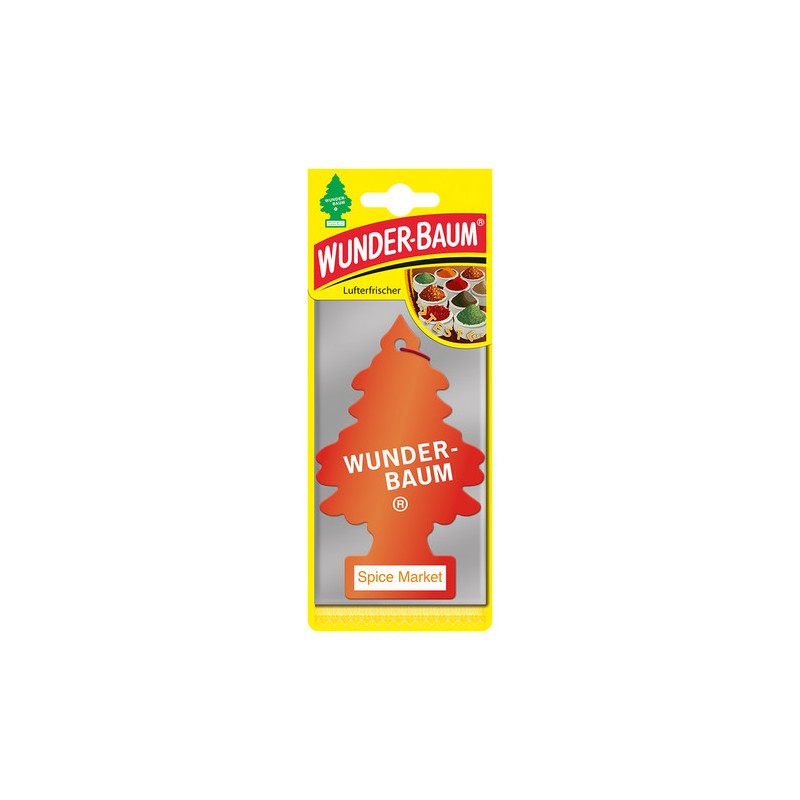 Osviežujúca a dlhotrvajúca vôňa v starom známom tvare stromčeka, ktorý všetci poznáme. Skvelá a dlhodobo overená kvalita voňaviek WUNDER-BAUM do auta či obytného priestoru. Vôňa: Spice Market. Hmotnosť: 5g.