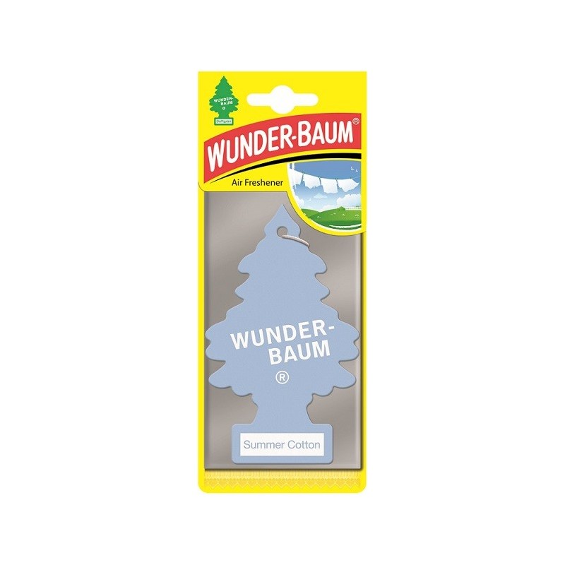 Osviežujúca a dlhotrvajúca vôňa v starom známom tvare stromčeka, ktorý všetci poznáme. Skvelá a dlhodobo overená kvalita voňaviek WUNDER-BAUM do auta či obytného priestoru. Vôňa: Summer cotton. Hmotnosť: 5g.