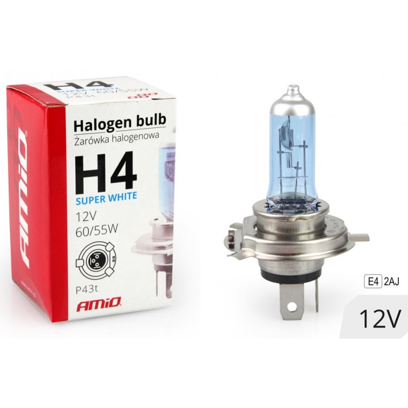 Halogénová žiarovka H4 Super White produkuje veľmi jasnú 5500 K farbu podobnú farbe originálneho xenónového osvetlenia  . Má homologizáciu E4 vyrazenú na závite žiarovky.